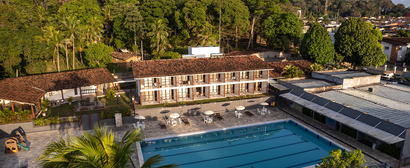Contamos com piscina olímpica para adultos e outra para crianças, além de mesas e cadeiras, ombrelones e espreguiçadeiras.